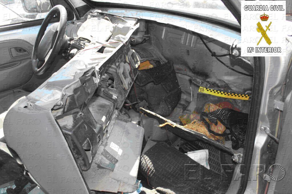 Más tarde el vehículo fue localizado por una patrulla en una calle del Barrio del Hipódromo. La furgoneta estaba cerrada y su conductor había desaparecido. Los agentes tuvieron que romper uno de los cristales para poder acceder a su interior y realizar un exhaustivo reconocimiento. Al examinar el salpicadero, observaron que dentro se ocultaba una persona. Alarmados por su estado de salud, los guardias civiles procedieron de inmediato a su extracción forzando las piezas y haciendo palanca para mantener una apertura suficiente. Al mismo tiempo, dieron aviso a los servicios sanitarios ante riesgo que corría la vida de esa persona, que estaba completamente encajada en el doble fondo, donde a penas podía coger aire. Su extracción fue muy laboriosa, según la Comandancia. Cuando pudo ser rescatada, los guardias civiles le practicaron los primeros auxilios. Se trataba de una mujer subsahariana de 35 años.