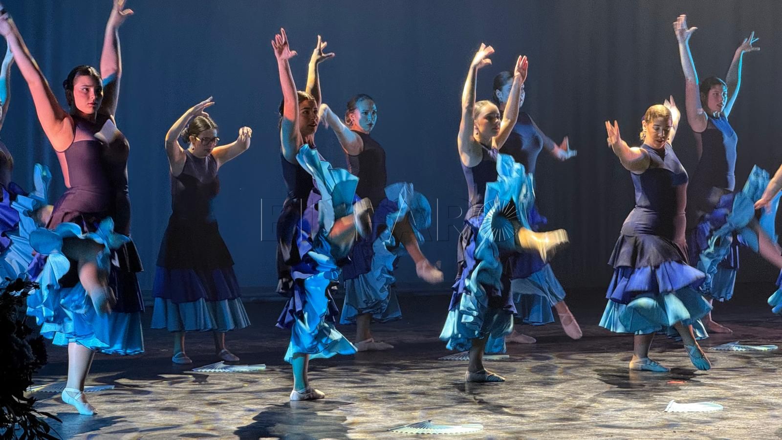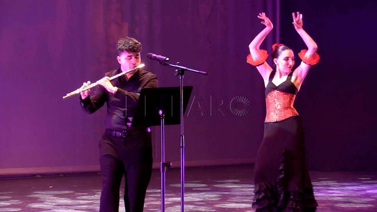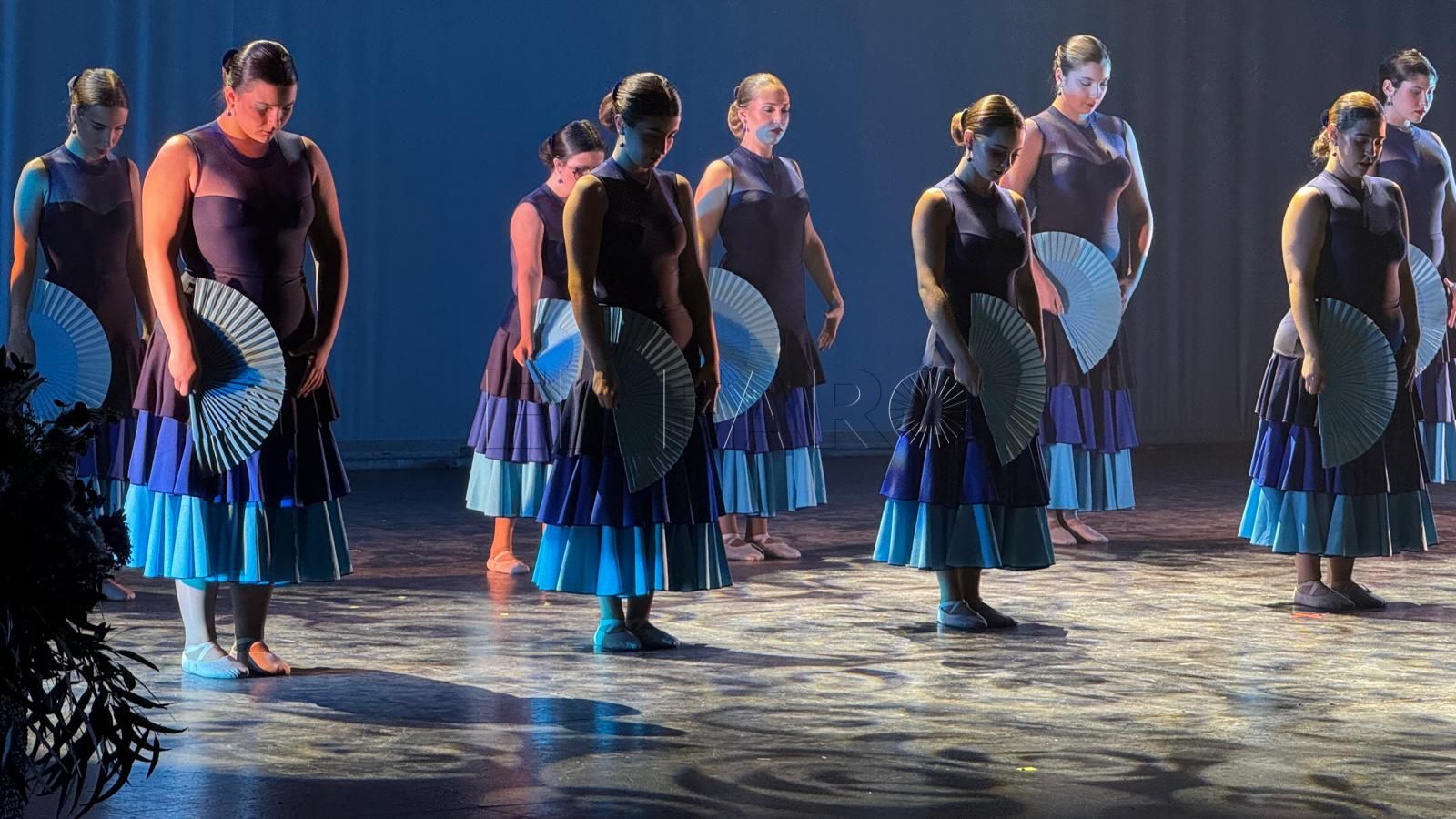 No se trataba únicamente de escuchar música —aunque esta estuvo presente incluso en directo, con la intervención de un joven flautista— ni de observar el movimiento. La velada se construyó como un espacio en el que ambas dimensiones se entrelazaban hasta hacerse inseparables. La música no acompañaba: sostenía. Era el lugar desde el que nacía el gesto, desde el que se organizaba el tiempo y desde el que cada pieza adquiría sentido. El taconeo marcaba el pulso, las castañuelas dibujaban el compás, las puntas resonaban sobre las tablas amplificando la caída del salto, mientras el vestuario —tutús, volantes, mantones— contribuía no solo a la estética, sino también a la narrativa sonora del conjunto.