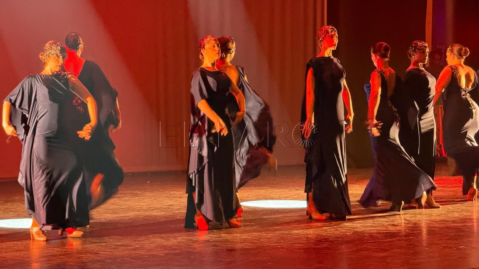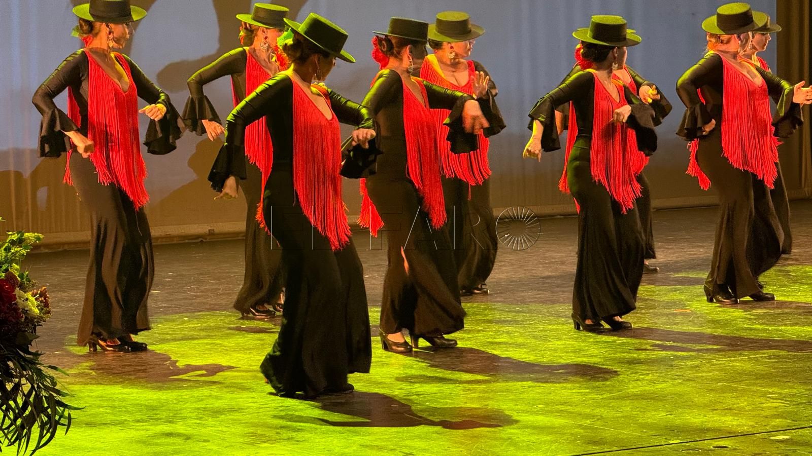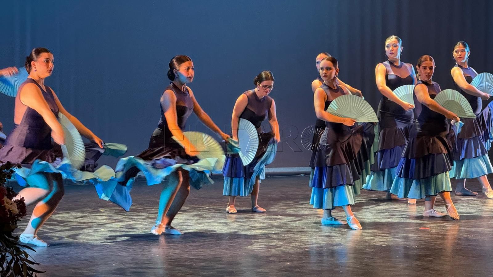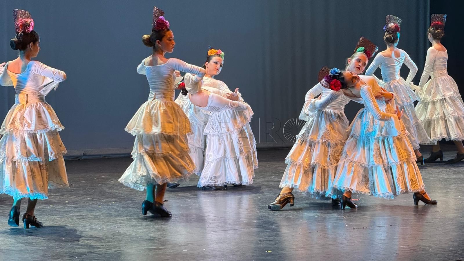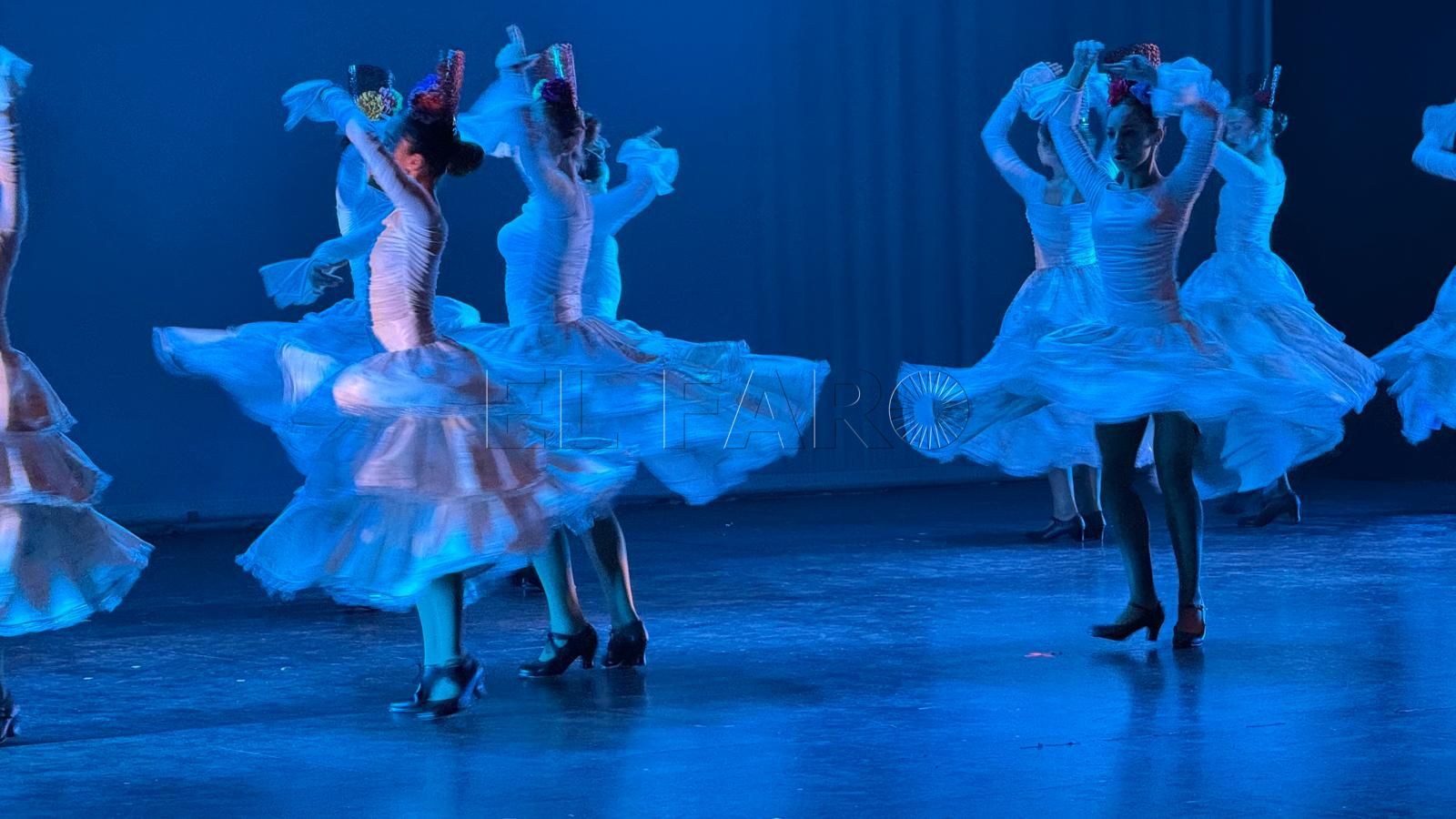 El cambio hacia la danza española trajo consigo una transformación inmediata del paisaje sonoro. El taconeo irrumpió con fuerza, acompañado por el ritmo seco de las castañuelas. Seis bailarinas, envueltas en mantones y con rosas como elemento escénico, desplegaron una coreografía donde los giros y las figuras parecían sostener una tensión entre lo clásico y lo flamenco. El público respondió con aplausos y “olés”, integrándose en ese mismo compás.