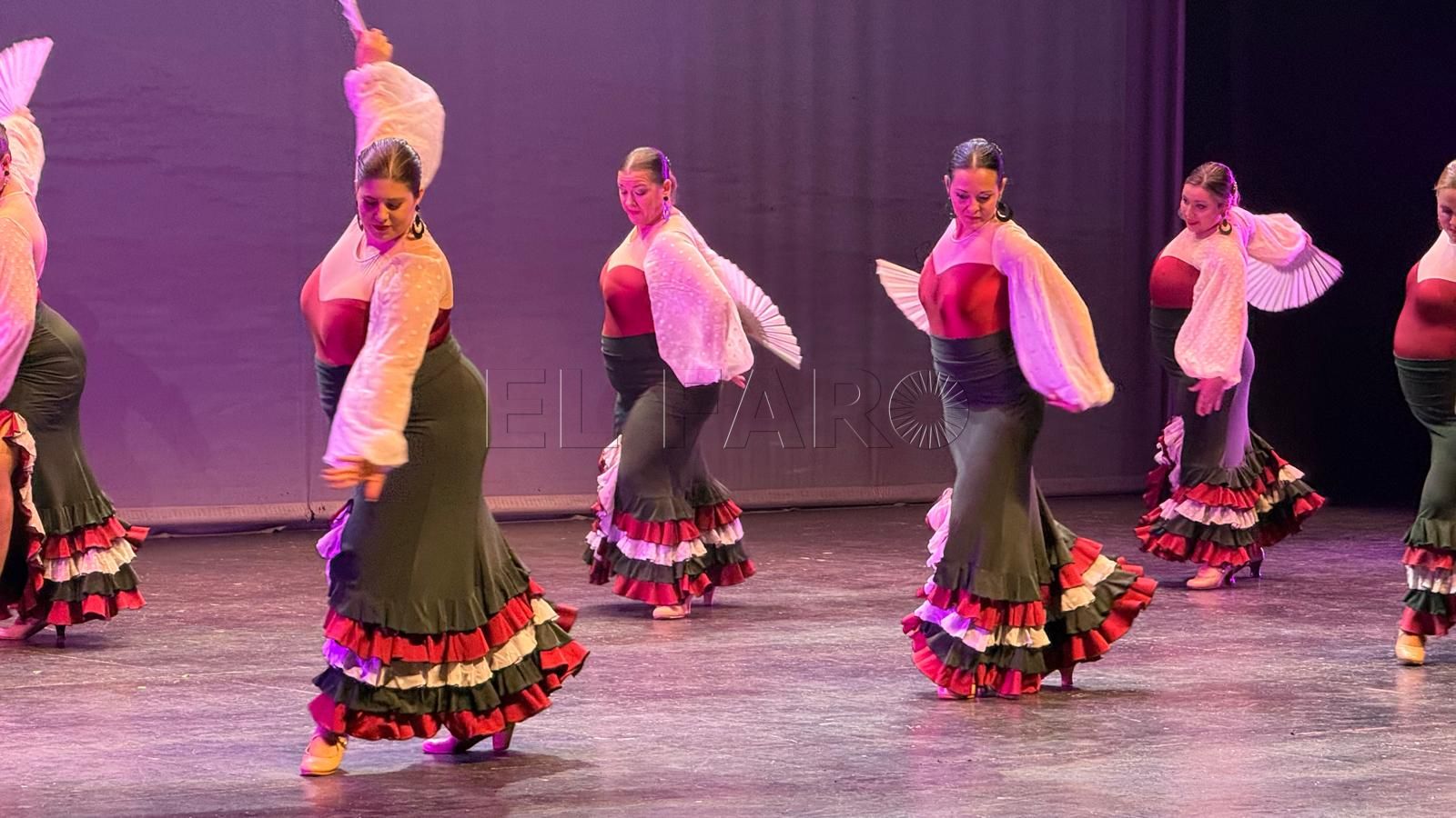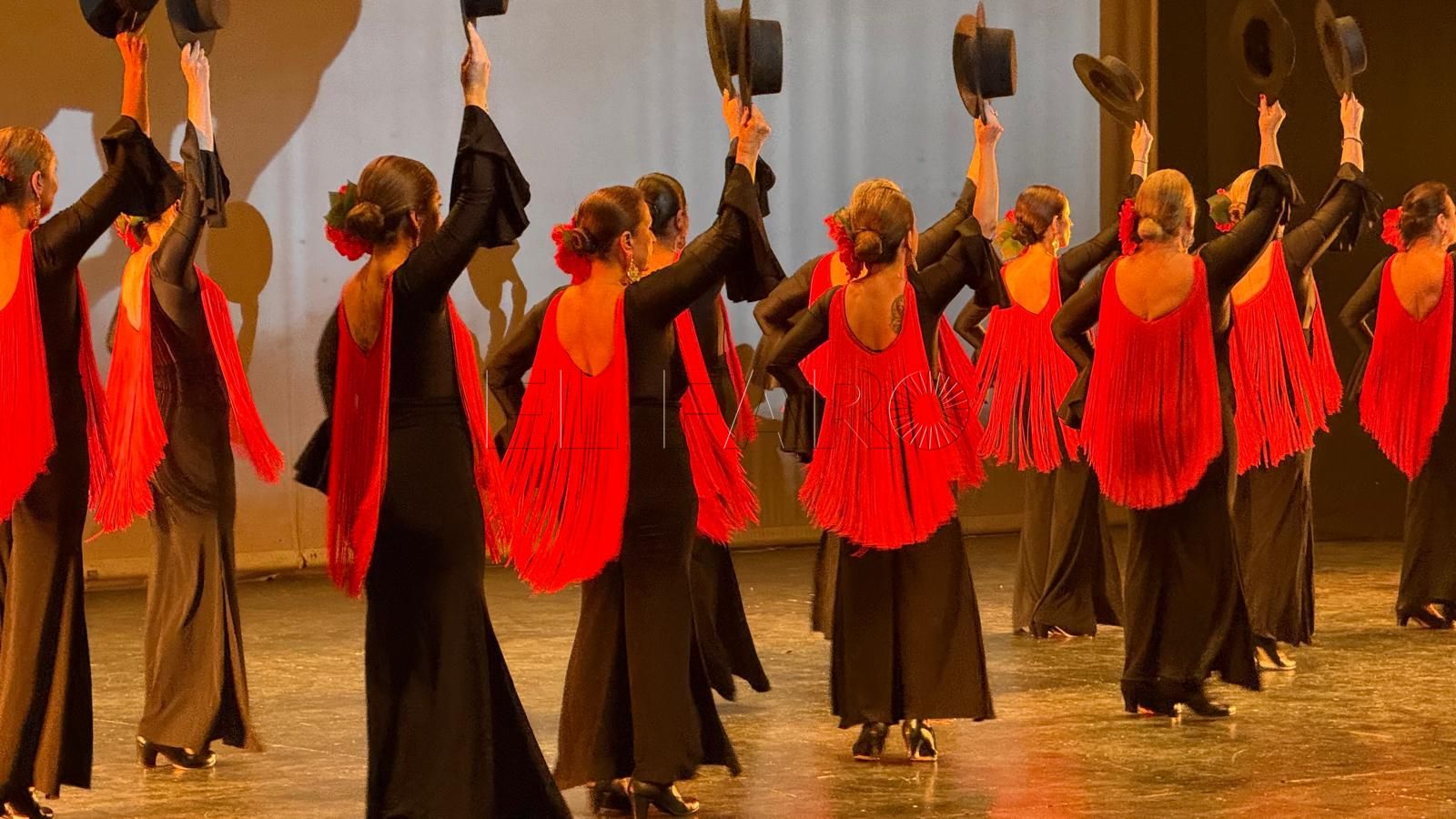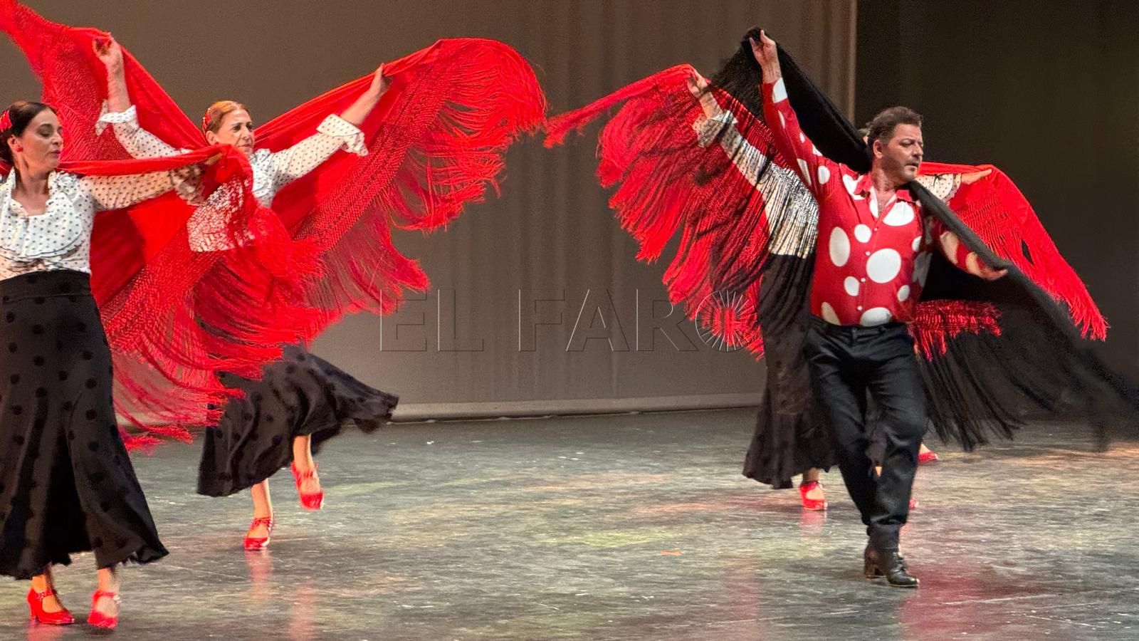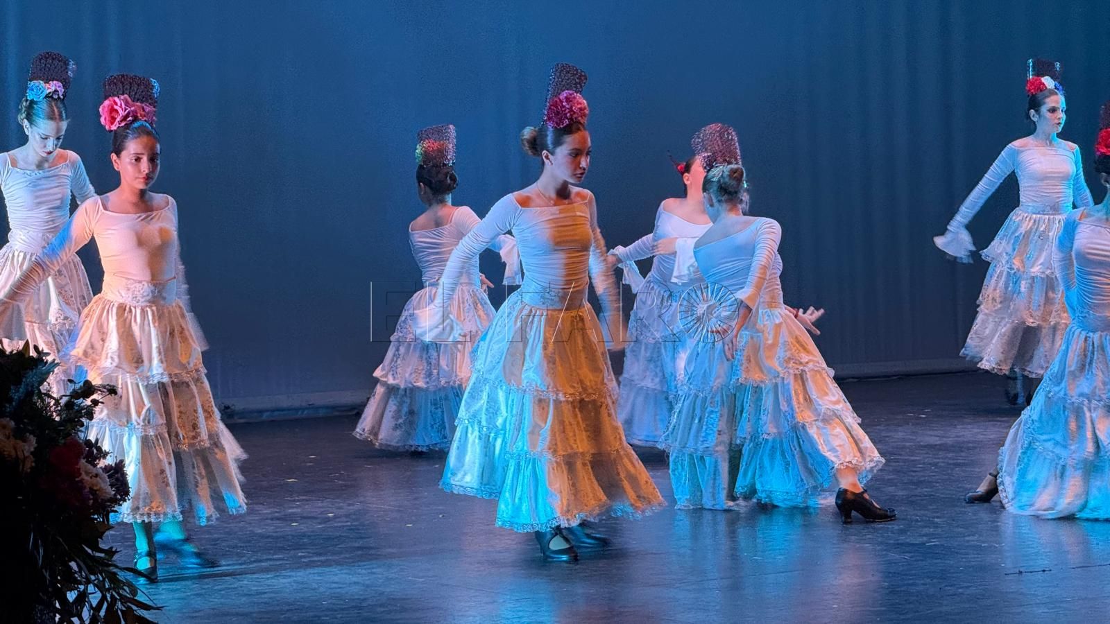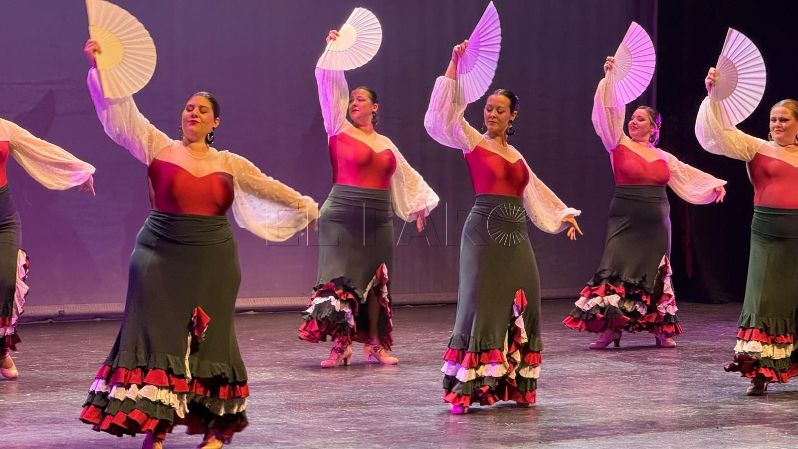 El cambio hacia la danza española trajo consigo una transformación inmediata del paisaje sonoro. El taconeo irrumpió con fuerza, acompañado por el ritmo seco de las castañuelas. Seis bailarinas, envueltas en mantones y con rosas como elemento escénico, desplegaron una coreografía donde los giros y las figuras parecían sostener una tensión entre lo clásico y lo flamenco. El público respondió con aplausos y “olés”, integrándose en ese mismo compás.