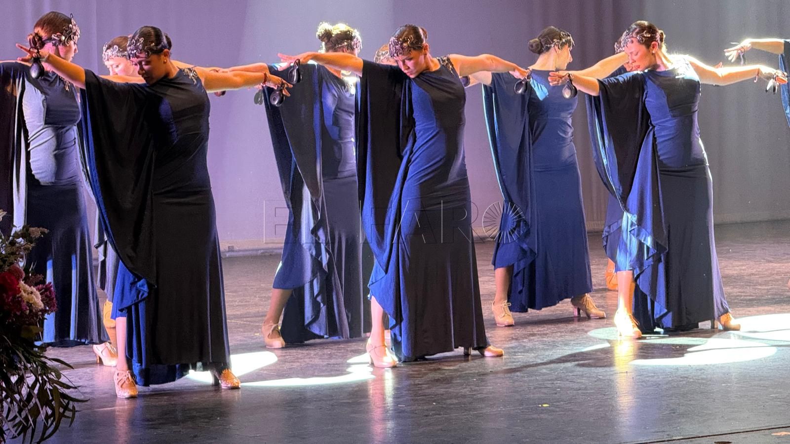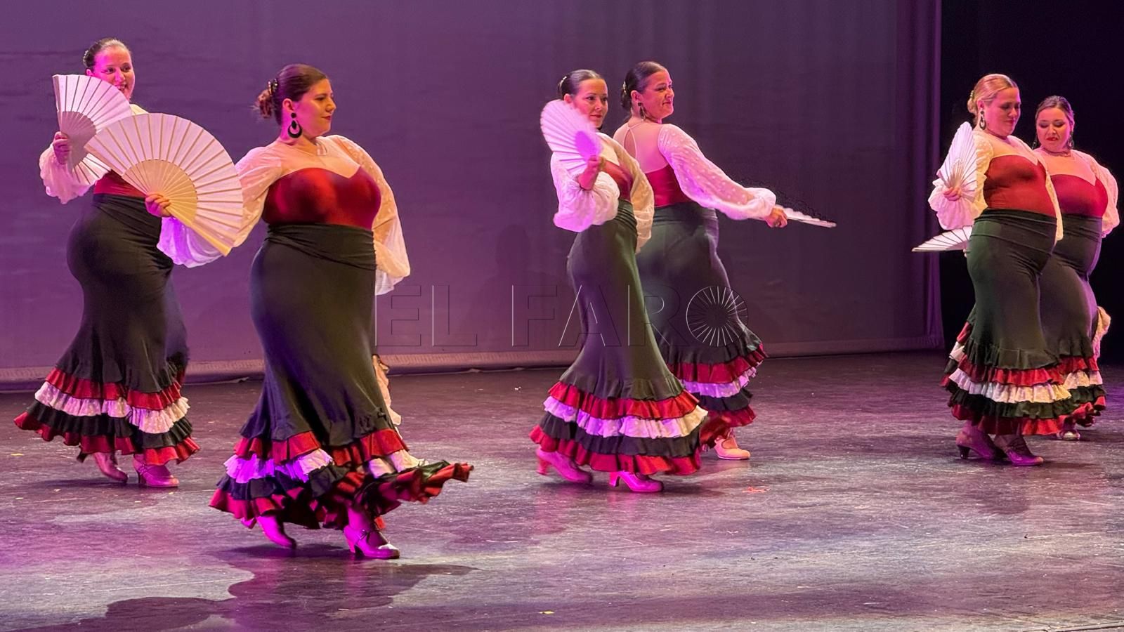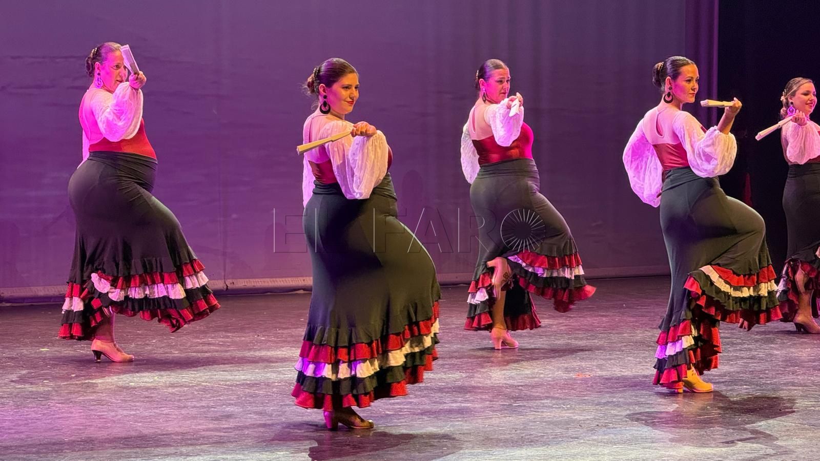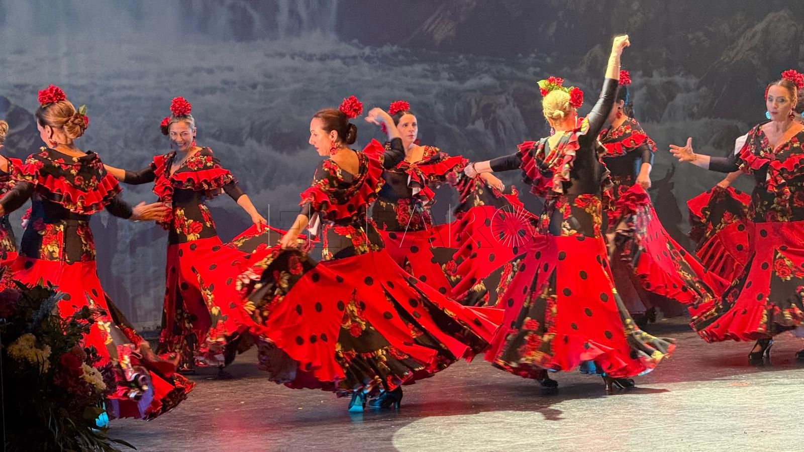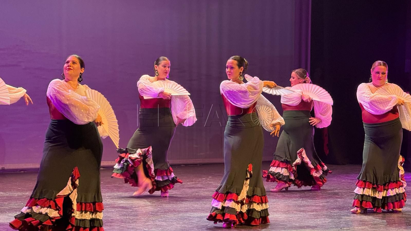 El cambio hacia la danza española trajo consigo una transformación inmediata del paisaje sonoro. El taconeo irrumpió con fuerza, acompañado por el ritmo seco de las castañuelas. Seis bailarinas, envueltas en mantones y con rosas como elemento escénico, desplegaron una coreografía donde los giros y las figuras parecían sostener una tensión entre lo clásico y lo flamenco. El público respondió con aplausos y “olés”, integrándose en ese mismo compás.