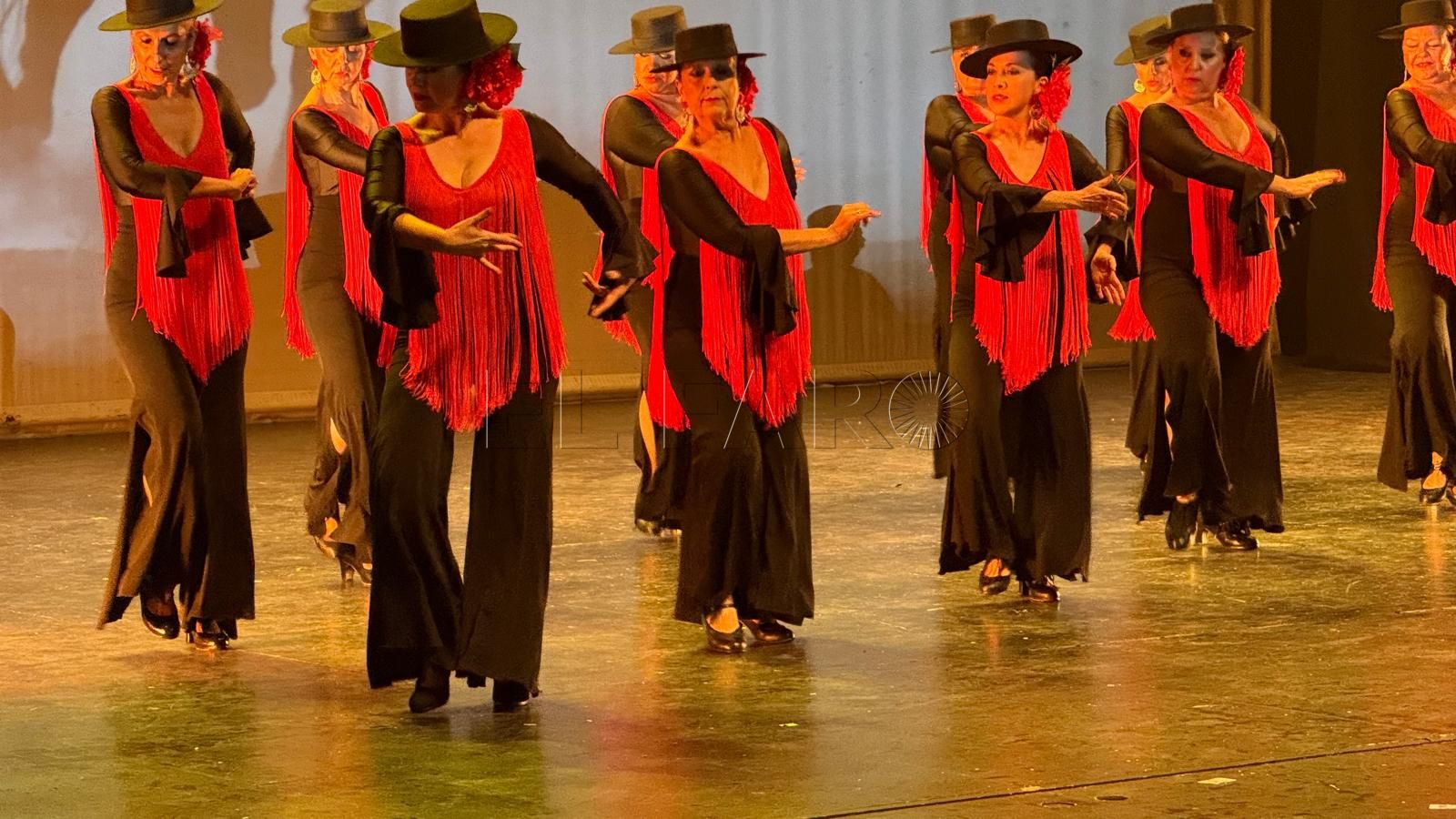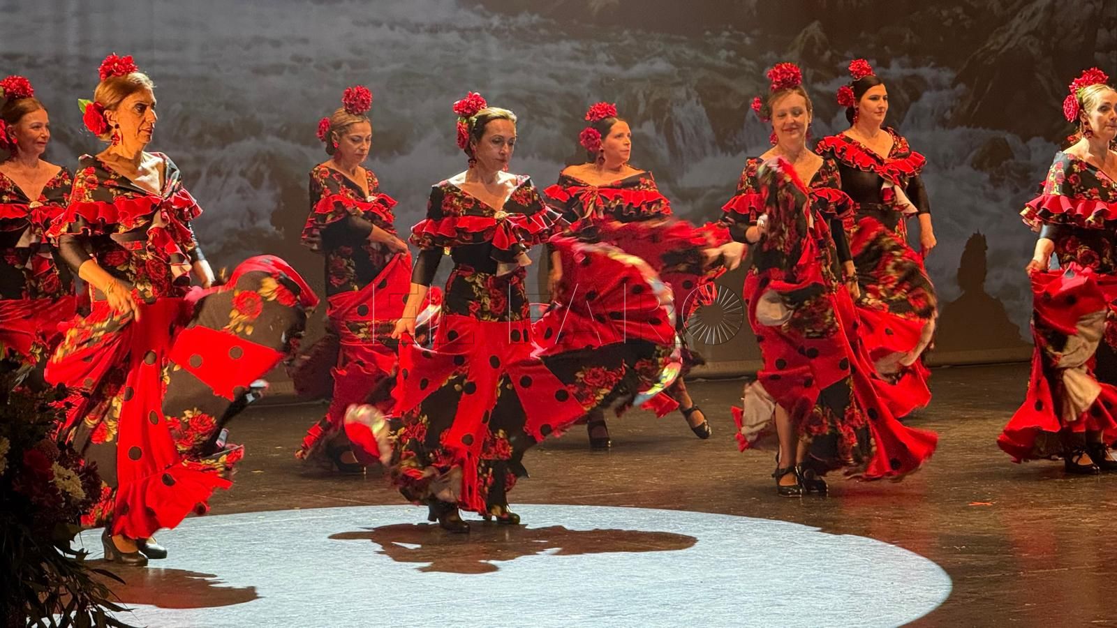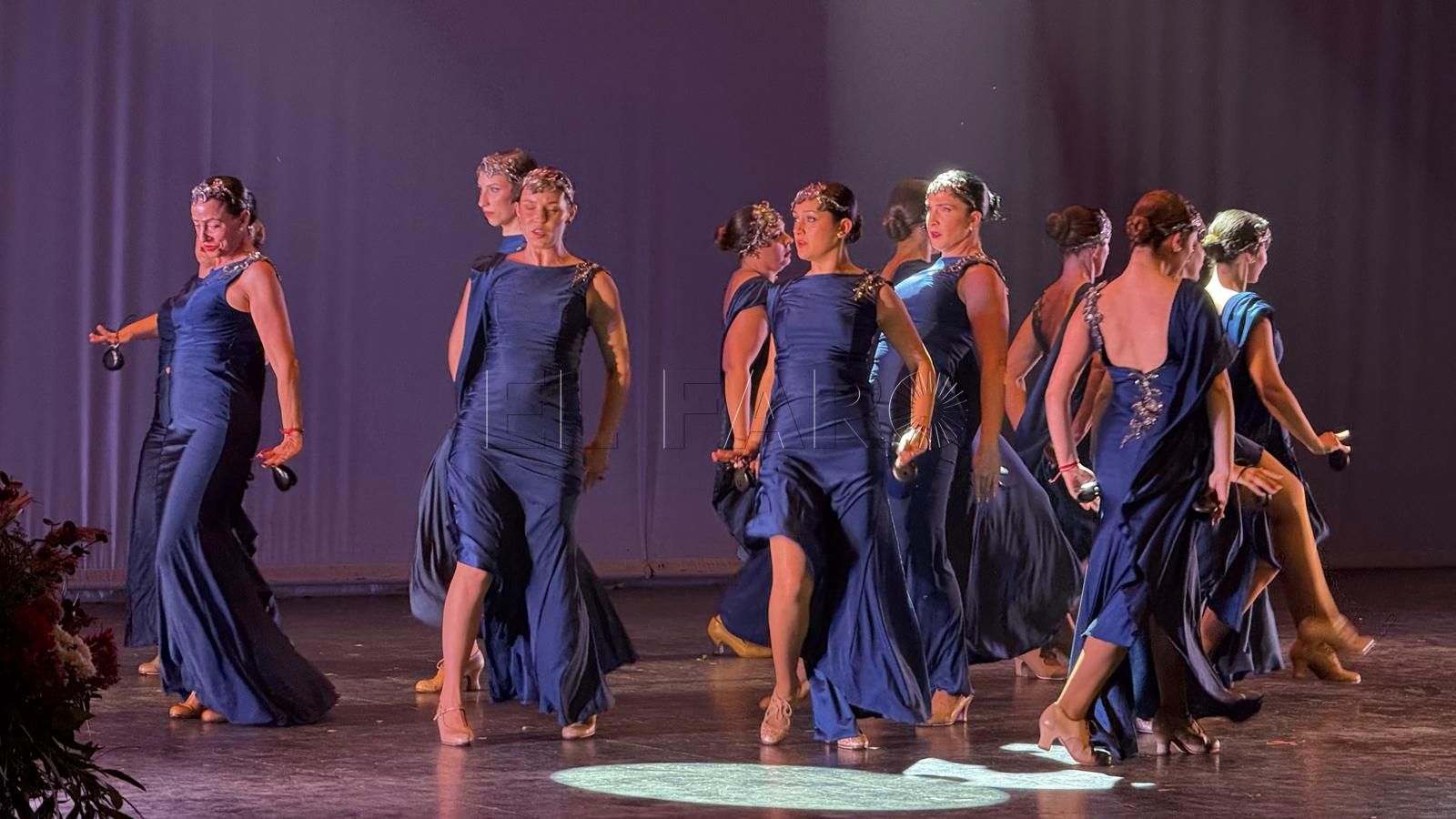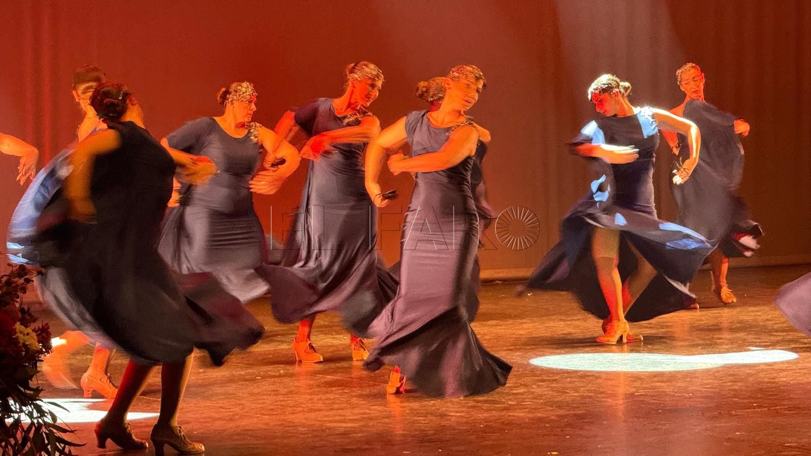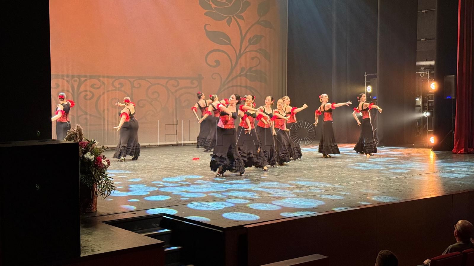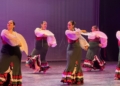 El cambio hacia la danza española trajo consigo una transformación inmediata del paisaje sonoro. El taconeo irrumpió con fuerza, acompañado por el ritmo seco de las castañuelas. Seis bailarinas, envueltas en mantones y con rosas como elemento escénico, desplegaron una coreografía donde los giros y las figuras parecían sostener una tensión entre lo clásico y lo flamenco. El público respondió con aplausos y “olés”, integrándose en ese mismo compás.