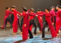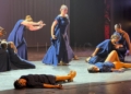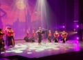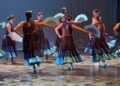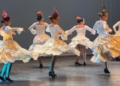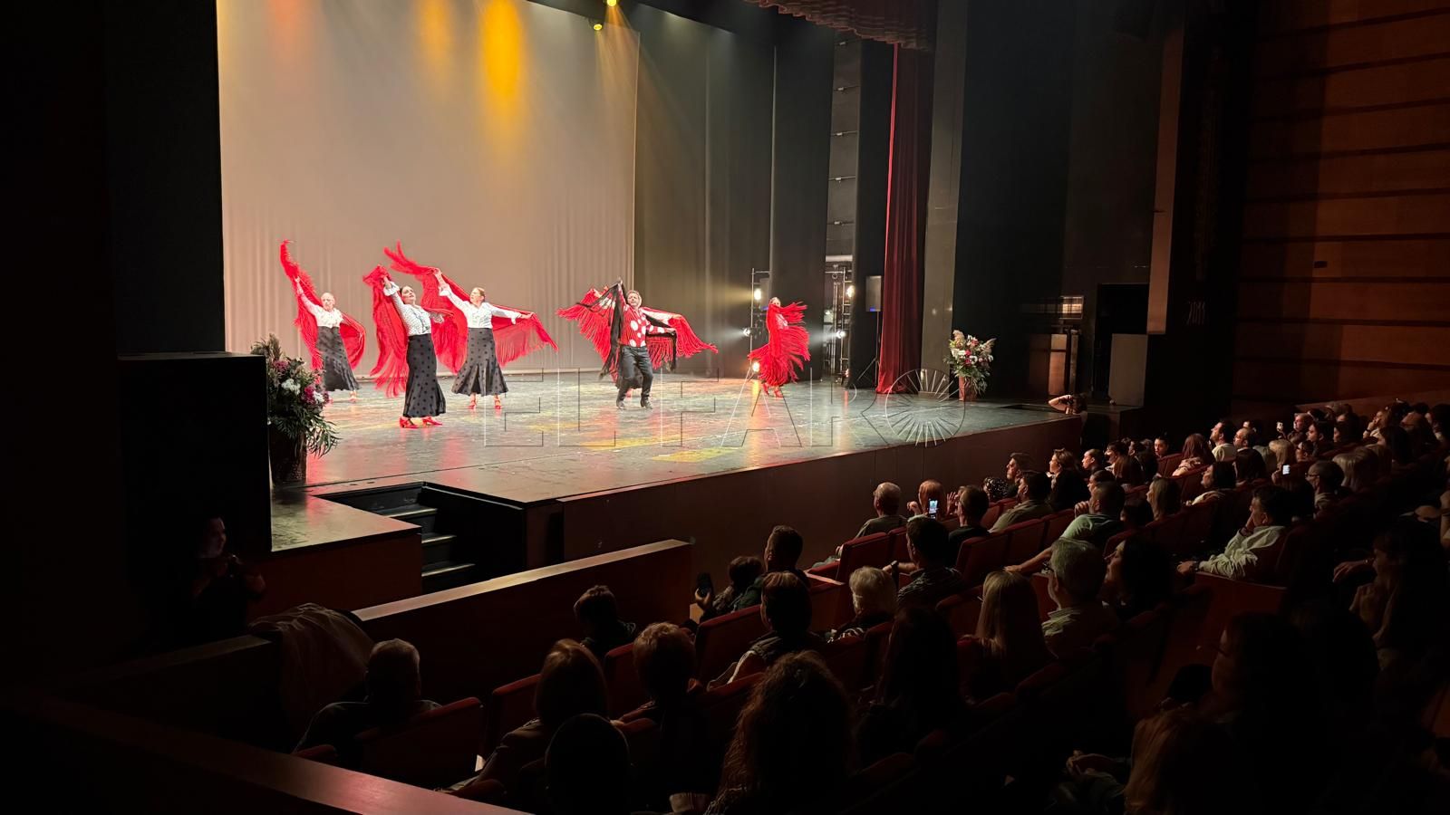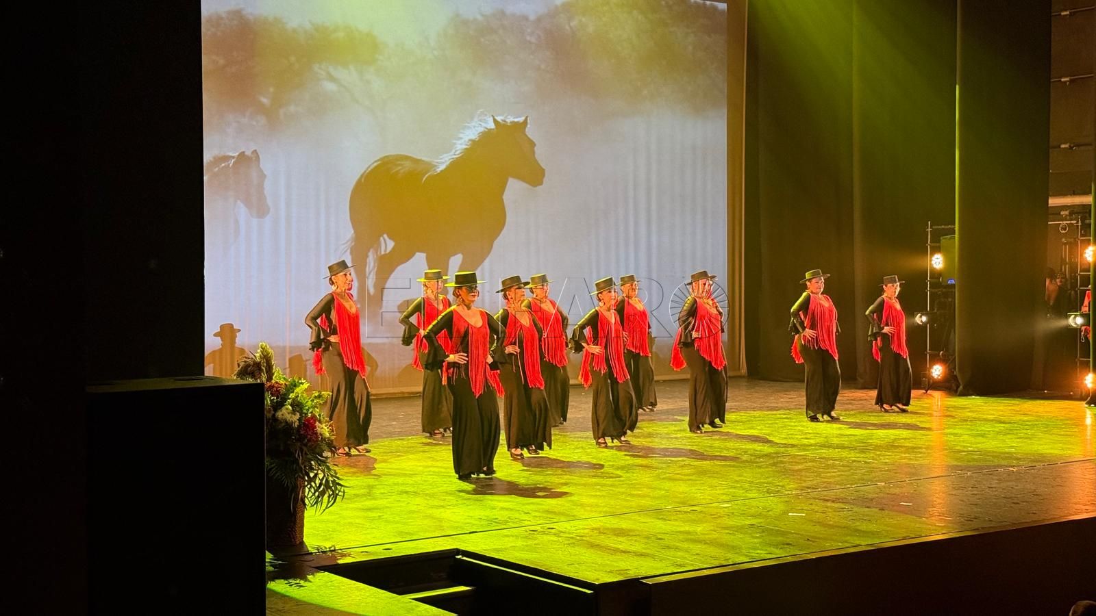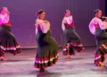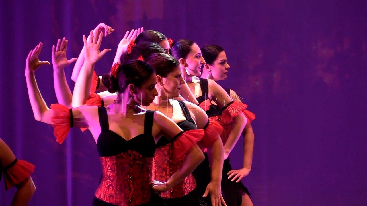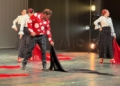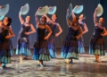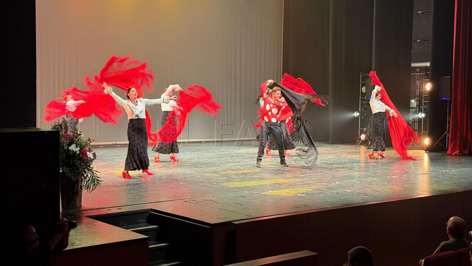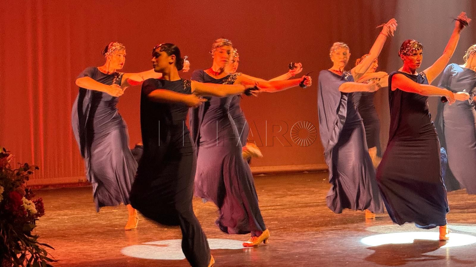 El cambio hacia la danza española trajo consigo una transformación inmediata del paisaje sonoro. El taconeo irrumpió con fuerza, acompañado por el ritmo seco de las castañuelas. Seis bailarinas, envueltas en mantones y con rosas como elemento escénico, desplegaron una coreografía donde los giros y las figuras parecían sostener una tensión entre lo clásico y lo flamenco. El público respondió con aplausos y “olés”, integrándose en ese mismo compás.