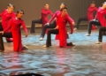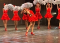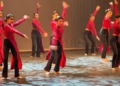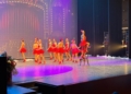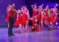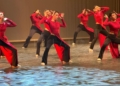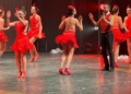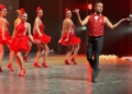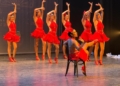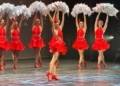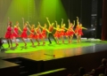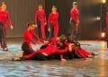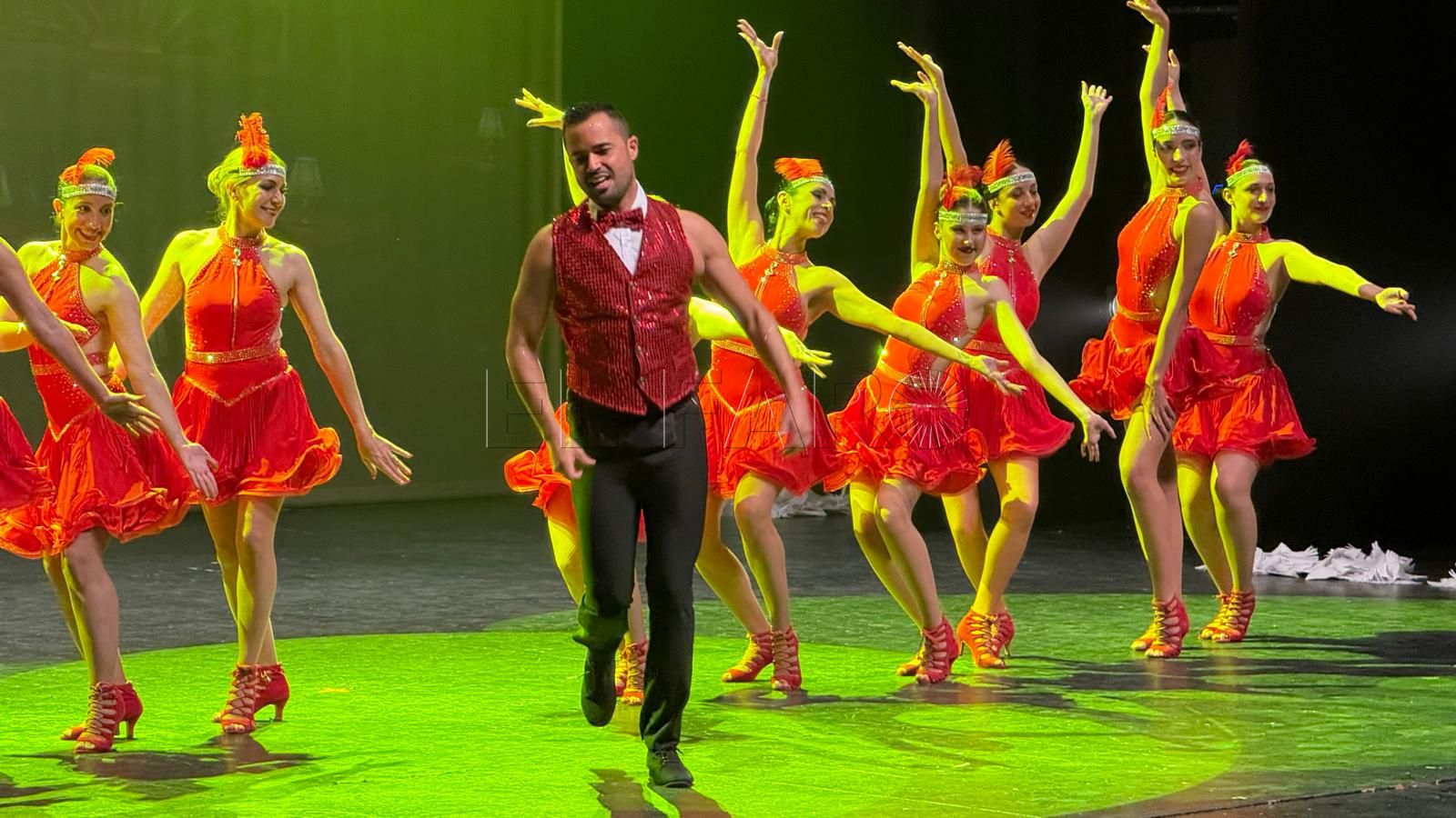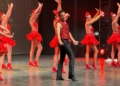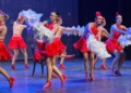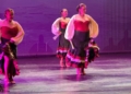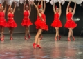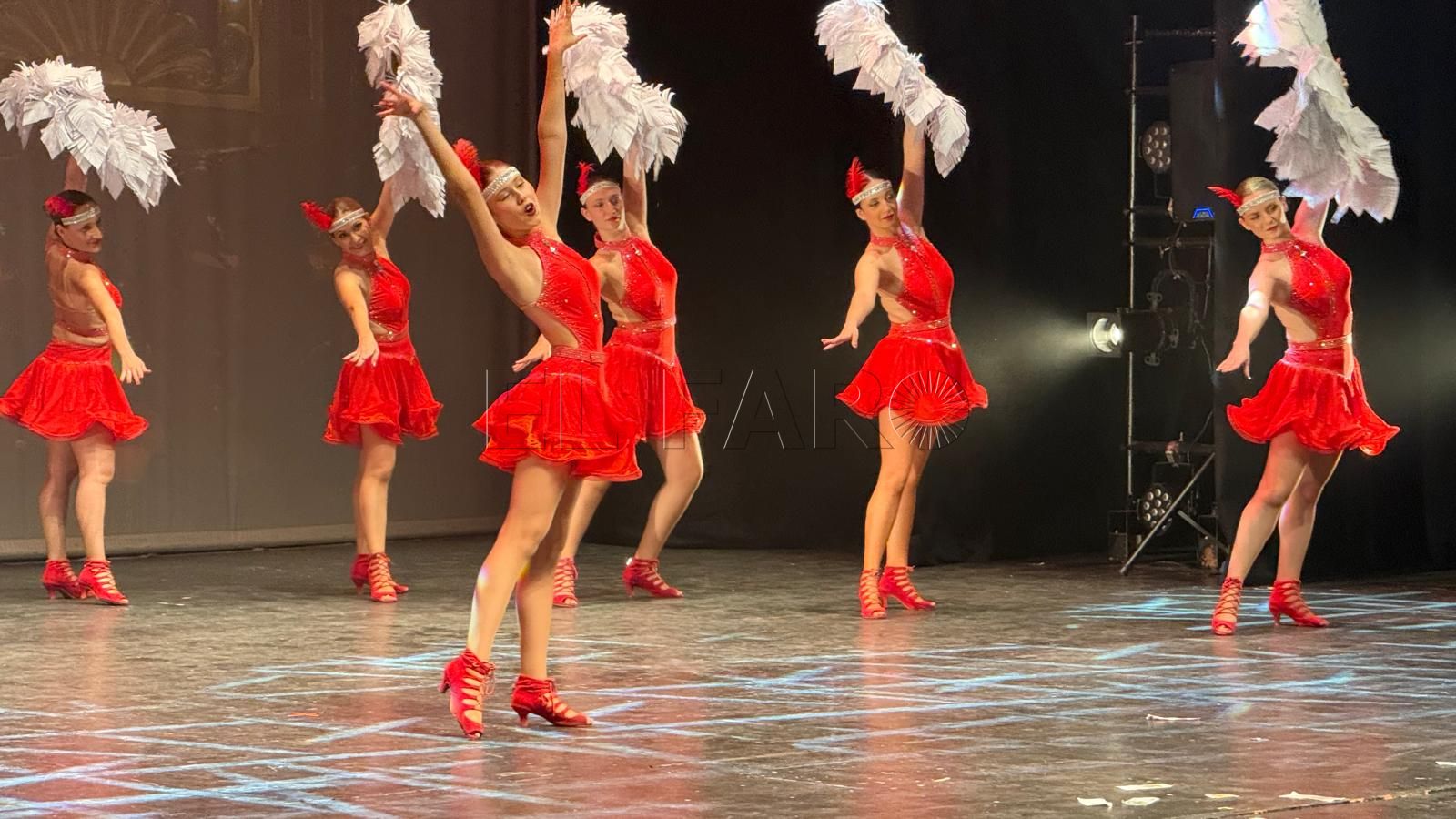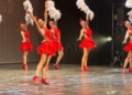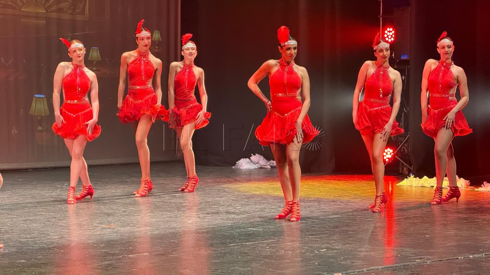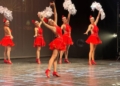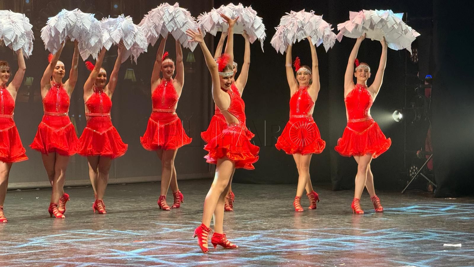 El paso al cabaret, bajo la coreografía de Nuria Nieto, supuso una ruptura estética y sonora. El rojo, los brillos y las plumas invadieron el escenario, acompañados por una música en playback que evocaba los grandes musicales. Doce bailarinas y un bailarín articularon una historia donde danza, interpretación y ritmo escénico se entrelazaban en una propuesta de carácter teatral.