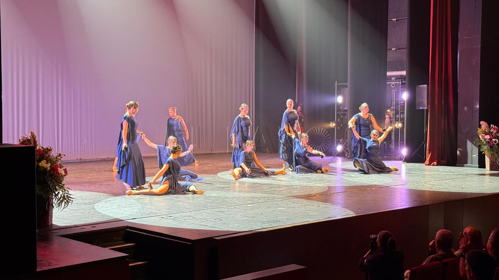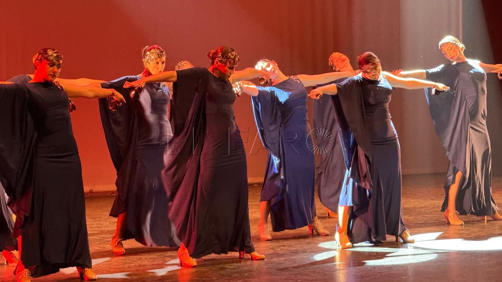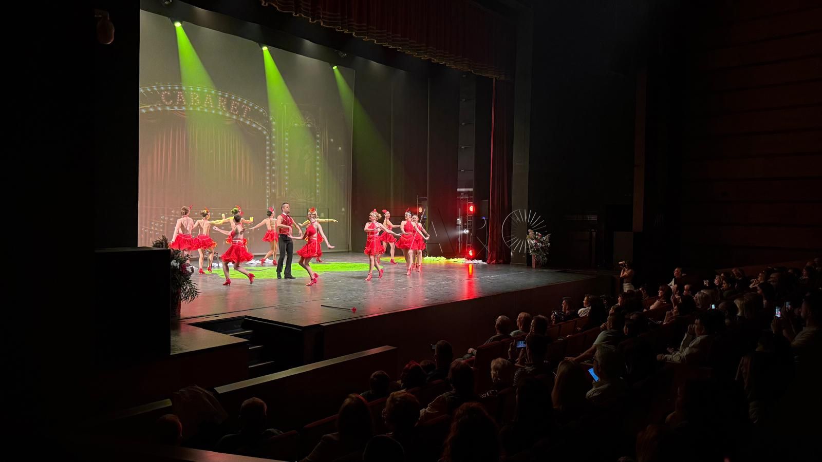 La Escuela de Música y Danza ‘Pilar Muñoz González’ celebró el Día Internacional de la Danza con un espectáculo compuesto por 13 números sostenidos por cuatro nombres imprescindibles en la enseñanza de esta disciplina en la ciudad: Nuria Nieto —actual directora del centro—, Mari Carmen Florido, Merche Hurtado y Gonzalo Carmona. Junto a las bailarinas, pisaron el escenario del Kursaal con firmeza para dar forma a una propuesta que fue, al mismo tiempo, celebración, admiración y recorrido por distintos lenguajes escénicos. La danza española, la clásica y el cabaret convivieron en una atmósfera que se movía entre lo onírico y lo expresivo, donde cada coreografía encontraba su identidad y cada ritmo aportaba un matiz propio.