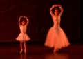 La primera escena estableció un diálogo entre aprendizaje y experiencia. Un grupo de niñas sentadas, una bailarina adulta calentando, una niña que se acercaba a acompañar sus movimientos. El sonido del piano, la presencia cinematográfica del fondo, construían un espacio en el que el movimiento se entendía como proceso, como tránsito entre generaciones. La música, aquí, actuaba como puente invisible.