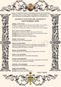 Por su parte, la Novena en honor a la Patrona, la Virgen de la Victoria, arrancará el 30 de agosto en la Iglesia del Sagrado Corazón. El 8 de septiembre, festividad de la Virgen, habrá una función solemne a las 12:00 horas y la tradicional procesión de alabanzas a las 19:00 horas.