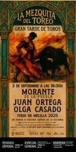 Aunque con una única corrida de toros, la programación taurina vuelve a ocupar un lugar destacado en la agenda. El miércoles 3 de septiembre se celebrará una corrida en la Plaza de Toros con un cartel de lujo: Morante de la Puebla, Juan Ortega y la novillera Olga Casado.