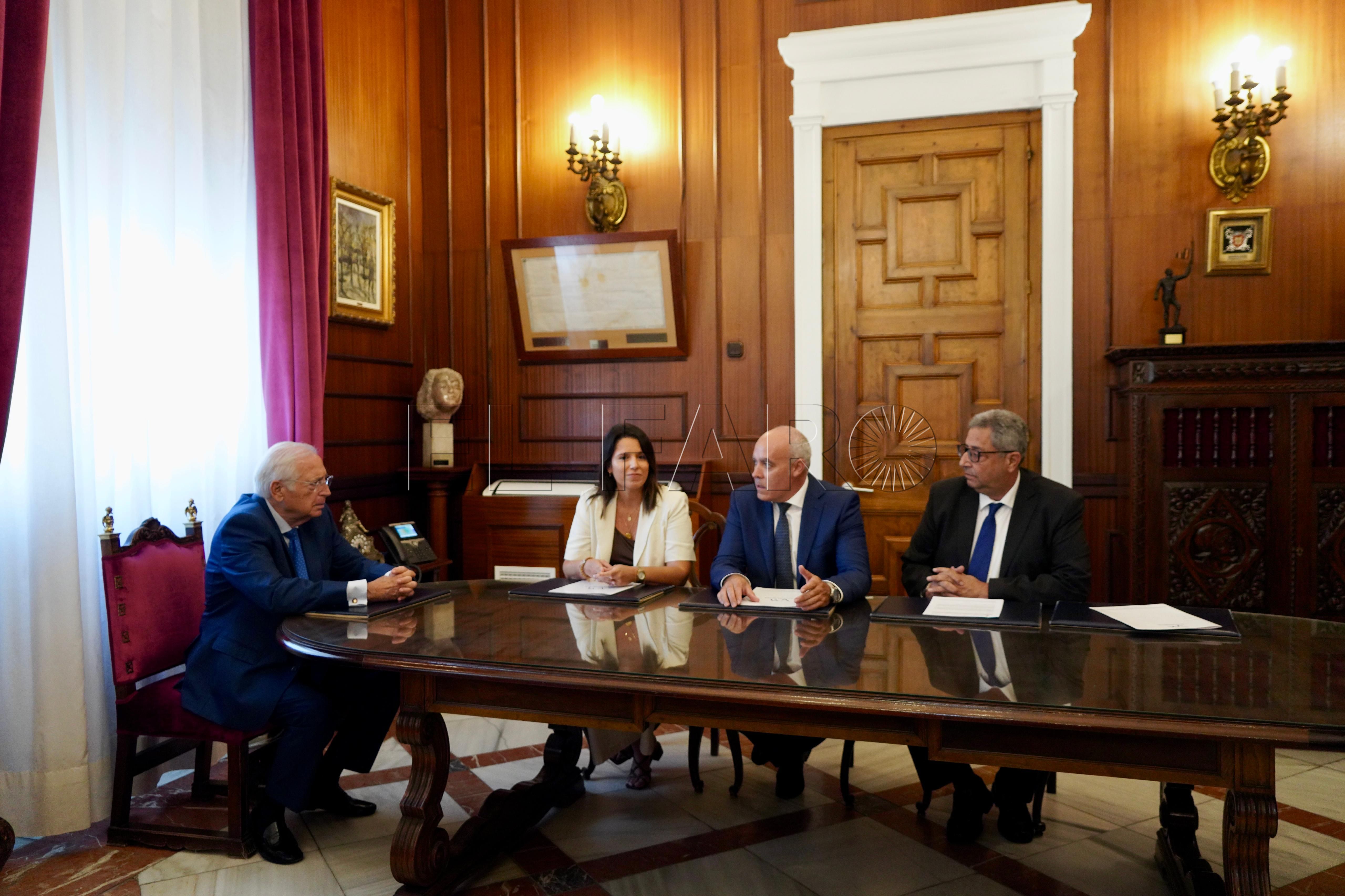 Representantes de Unicaja han sido recibidos por el presidente de la Ciudad, Juan José Imbroda y por el presidente de la Empresa Municipal de la Vivienda y Suelo de Melilla (Emvismesa), Hassan Driss.