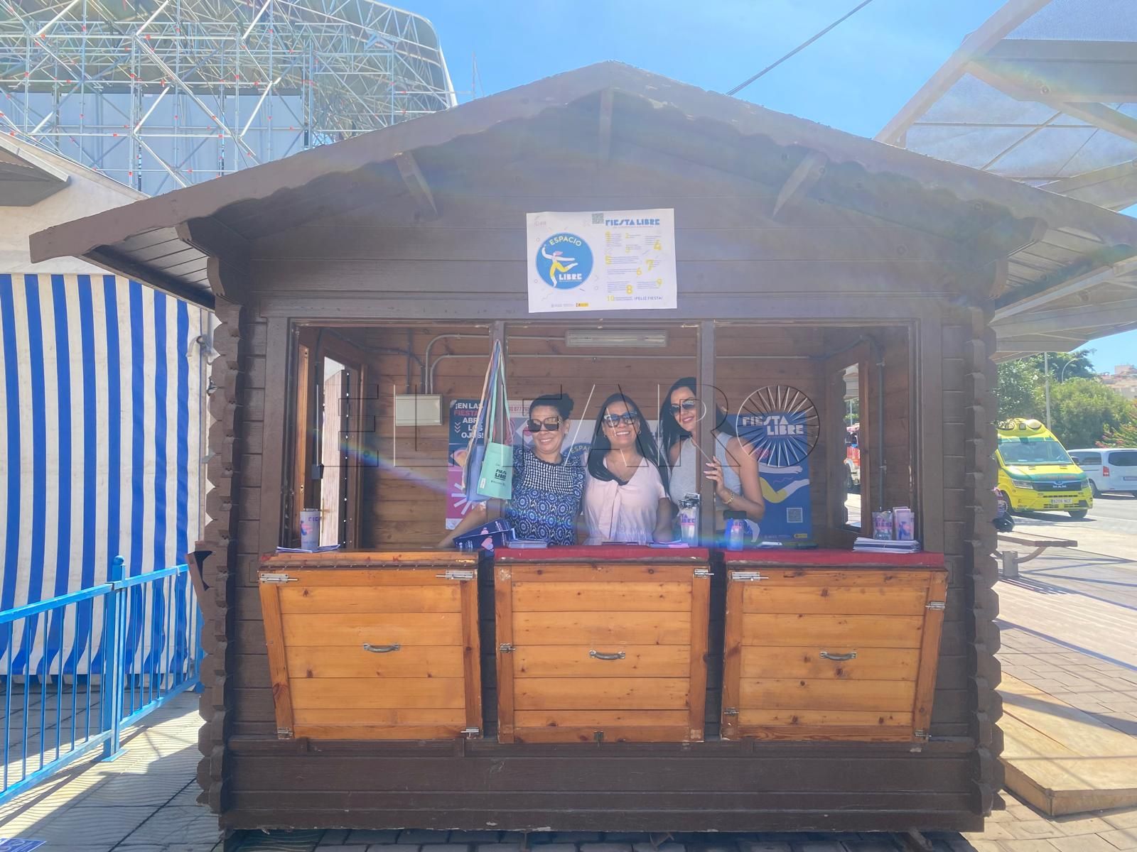 Junto a estas pulseras, los tapavasos han sido otro de los grandes éxitos de la campaña preventiva. "El cubre vaso. El año pasado sí que ha ido bien, pero este año es que vienen todos los momentos... No, no, todo gratuito. Aquí no se vende nada. Y los tapavasos es para que nadie les eche nada, que tienen un agujerito para la pajita y para que nadie les eche nada", especifica Lubna Charqui el Ayachi, coordinadora del punto.