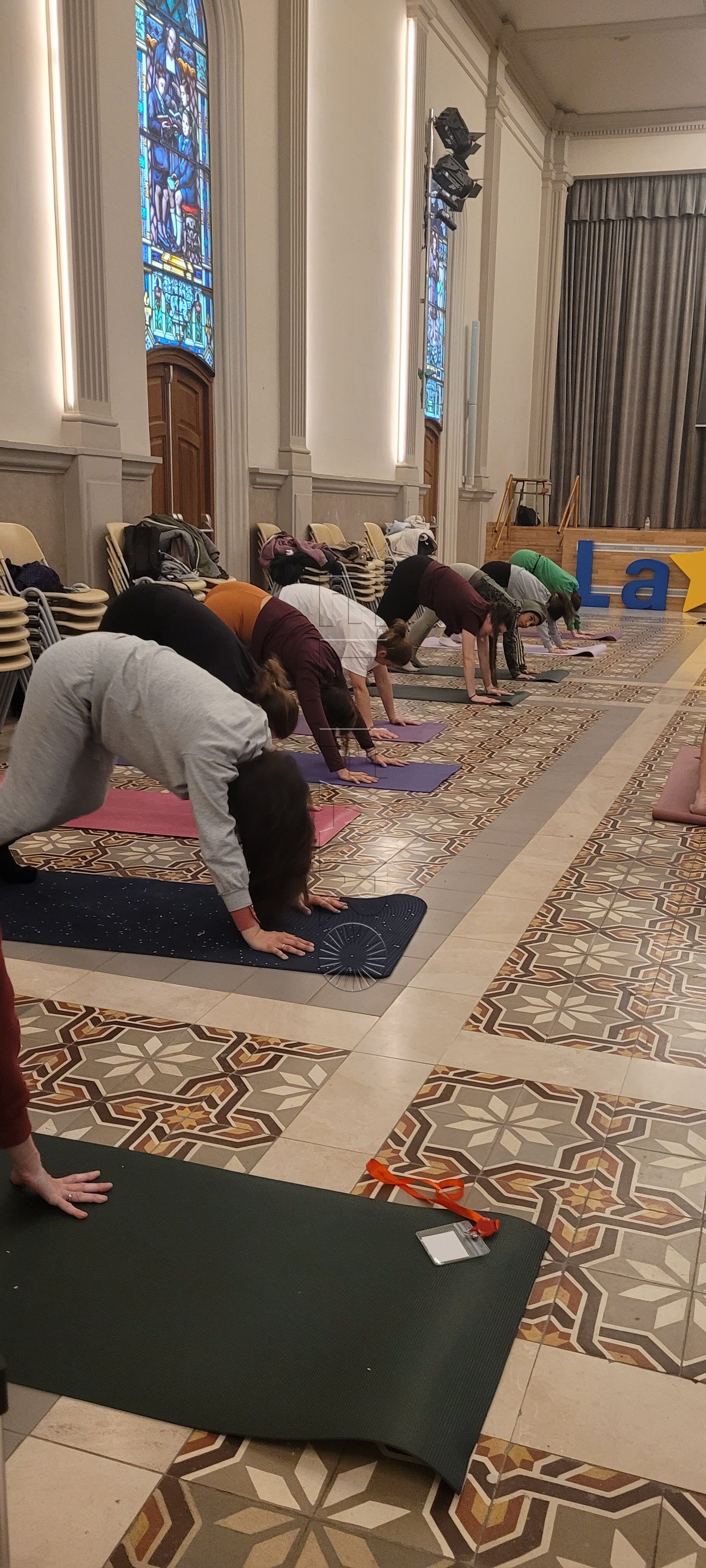 El Colegio La Salle ‘El Carmen’ ha sido el escenario perfecto para un encuentro de yoga en la tarde del pasado sábado. La luz tenue de las velas, el aroma a incienso y el espacio calmado e íntimo fueron los elementos que completaron la experiencia yoguística.