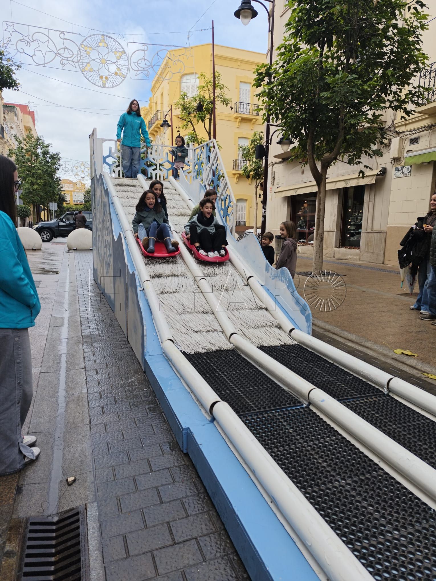 El Snow Slide permite a los participantes subir por una pasarela lateral y deslizarse en trineos individuales por dos pistas paralelas, en un entorno lleno de luces y decoración festiva. Una experiencia segura, emocionante y pensada para disfrutar en familia.