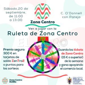 El próximo sábado 20 de septiembre de 11:00 a 13:00 horas en la calle O’Donnell con Pareja, Zona Centro traerá una nueva ruleta para los clientes de sus negocios asociados que se hayan gastado esa semana al menos 15 euros. Podrán llevarse premios en forma de puntos para nuestros futuros sorteos o cupones de saldo para gastar también en nuestras tiendas. ¡Esta vez se repartirán hasta 300 euros!